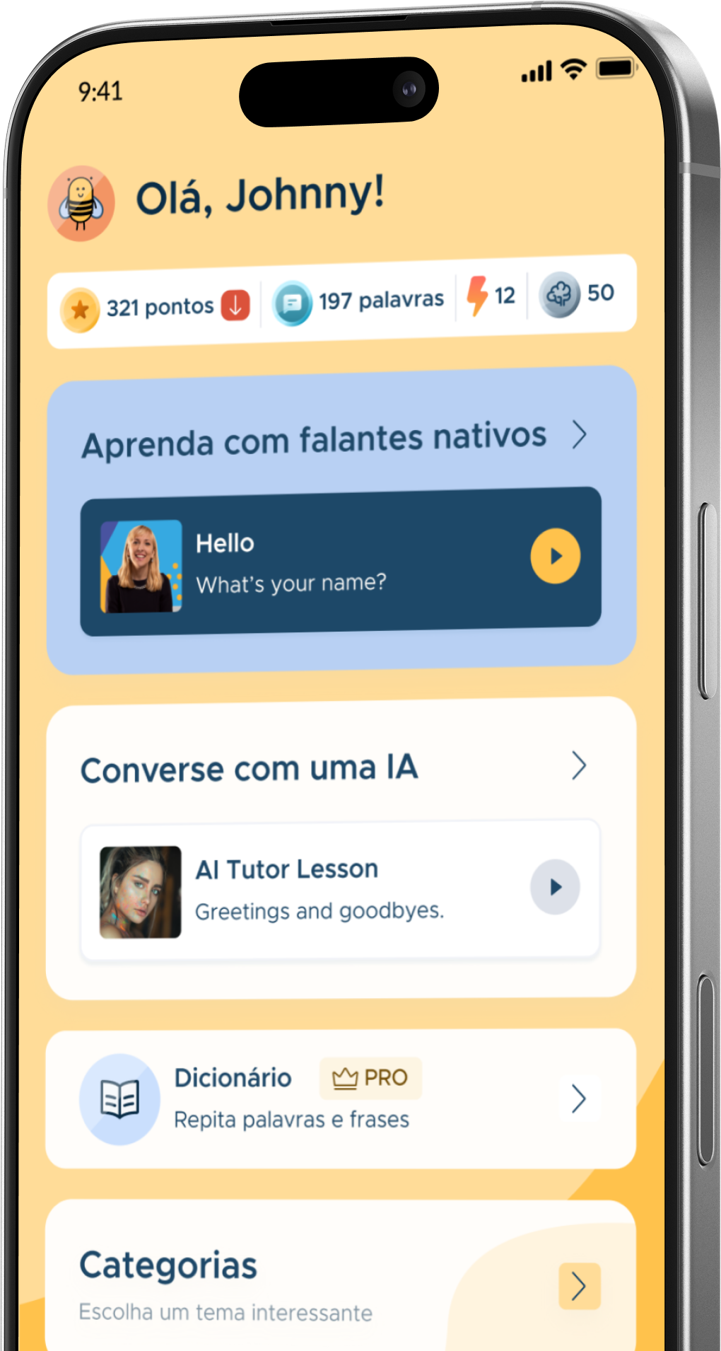 Pratique conversas reais com um tutor de IA inteligente que se adapta ao que você fala.