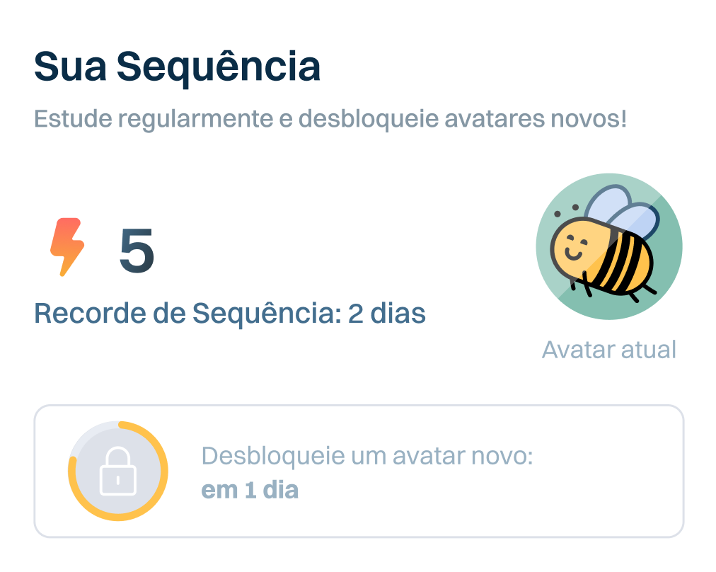 Mantenha sua sequência de estudos com lições diárias e lembretes.