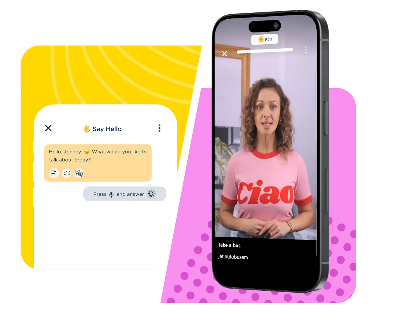 Opakuj slova a fráze nebo odpovídej lektorovi – aplikace tě poslouchá, analyzuje tvou výslovnost a poskytuje okamžitou zpětnou vazbu, aby ses mohl/a zlepšit.